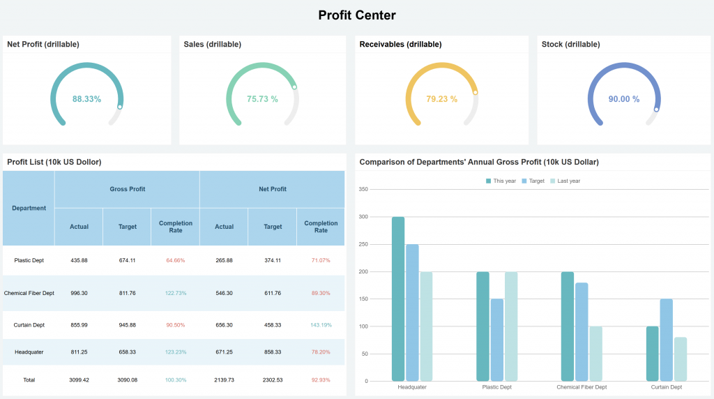 다음은 FineReport를 사용하여 작성한 재무 분석 보고서입니다.