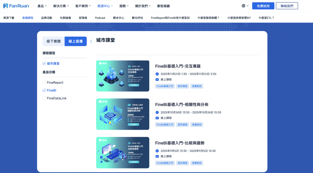 4.免費的Tableau, Power BI, FineReport, FineBI教學課程資源